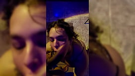 Una linda transexual menuda de pelo rosa recibe una felación facial y luego le practica una felación a una enorme polla. 5 min